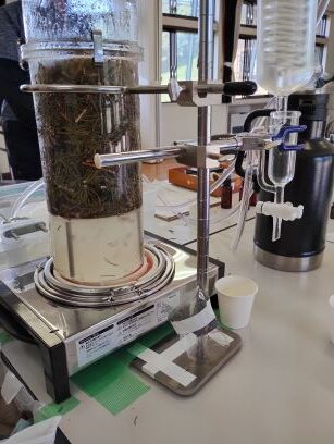 午前中は森林浴をたっぷり2時間半楽しんでいただき、ランチを挟んで、午後はアロマウォーターの蒸留体験を行いました。